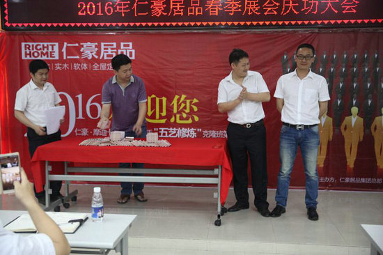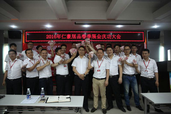 2016年5月12日,仁豪居品2016年春季展會慶功大會在深圳總部盛大召開。仁豪居品總經(jīng)理王曉峰、摩迪卡黃總、迪諾雅盧總出席活動,為各位銷售精英頒發(fā)了現(xiàn)金獎,并對各位銷售精英提高出業(yè)績穩(wěn)步增長,服務(wù)質(zhì)量跨越式提升的更高要求。