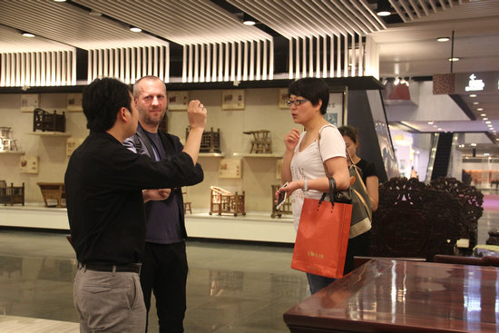 曾翔鷹陪同GianLuca Montali參觀深圳紅木家具博物館