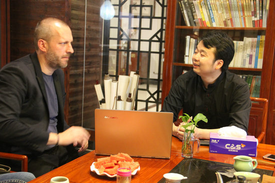 曾翔鷹先生向GianLuca Montali介紹中國家具文化