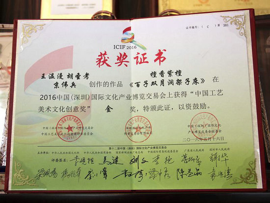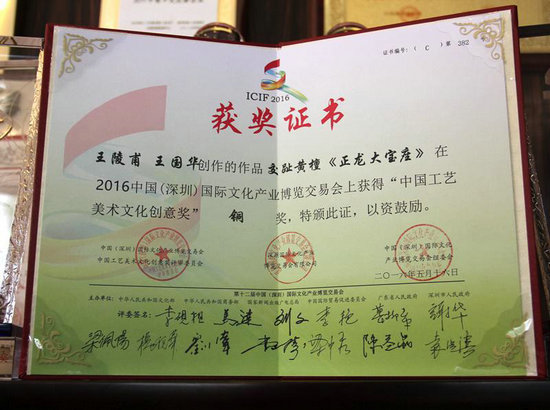 榮獲2016第十二屆深圳文博會(huì)“中國工藝美術(shù)文化創(chuàng)意獎(jiǎng)——金獎(jiǎng)”
