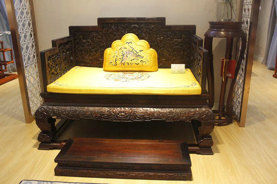 高居于殿堂臺(tái)座之上的寶座為皇權(quán)的象征,是中國家具等級至高的器具。正龍大寶座用上乘珍貴大紅酸枝木精心雕刻,紋理細(xì)致緊密,光澤深邃古樸。因用材厚實(shí),龍的圖案采用了難度很高的高浮雕技法,使紋飾浮凸,立體感十足。
