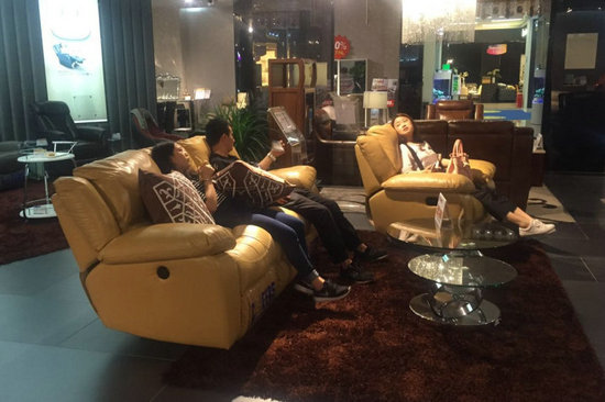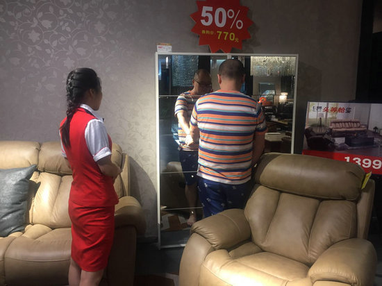 顧客在店中體驗(yàn)芝華仕頭等艙沙發(fā)
