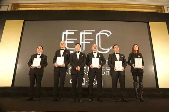 仁豪居品董事長(zhǎng)尤國(guó)忠(左一)領(lǐng)取“中國(guó)綠色家具優(yōu)品”并獲得準(zhǔn)入資格證書(shū)