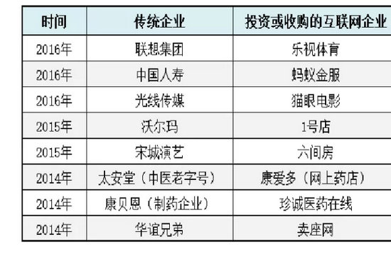 近兩年傳統(tǒng)企業(yè)對新興互聯(lián)網企業(yè)的垂直整合