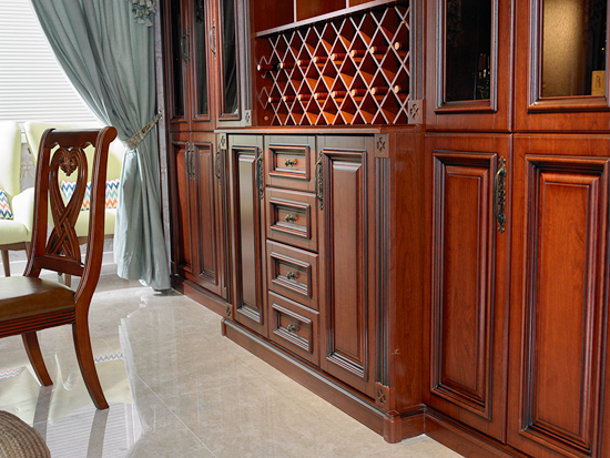 從書柜精巧的地方,隨手拿出一瓶珍藏的美酒,欣賞著手中的時尚畫報,自在品位,優(yōu)雅從容。