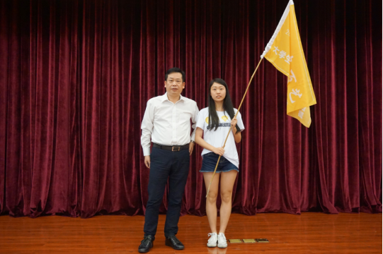 崔英杰總經(jīng)理向?qū)W生代表授旗