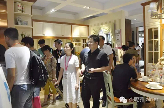 開幕首日,眾多經(jīng)銷商慕名而來。許多經(jīng)銷商在參觀簡歐家具“杰昵雅”展位時表達(dá)了強(qiáng)烈的合作意向, “過去的全屋定制,要么以柜體為主,空間美感不足,要么以成品家具為主,空間利用率難以滿足需求,但是在這里我們找到了未來定制家居的解決方向。”