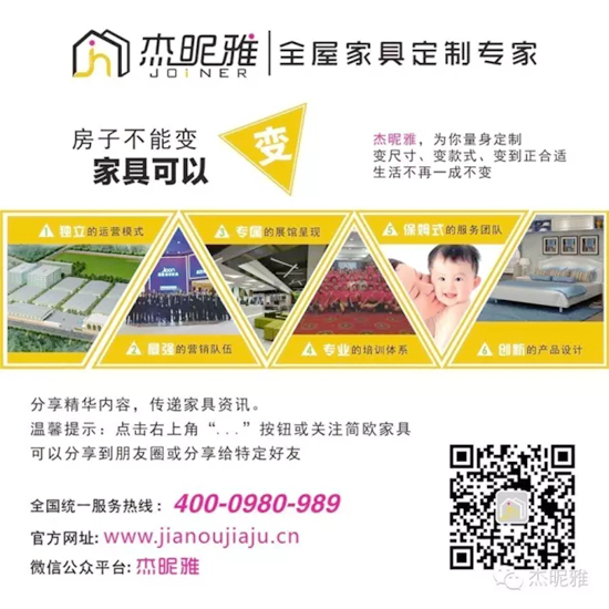 “杰昵雅”英文“Joiner”是工匠的意思,簡歐家具用工匠制度培養(yǎng)工匠習(xí)慣,把工匠習(xí)慣升華為工匠精神,如此,方能成就“全屋家具定制專家”。