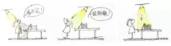 圖:燈具的安裝位置和打光方式不對,會由于眩光或者陰影緣故帶來反效果。