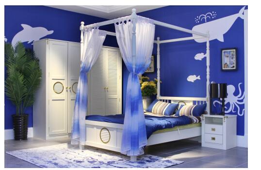 孩子對(duì)于未知擁有無(wú)窮的好奇心,希望像著童話(huà)里的主人公一樣,展開(kāi)一場(chǎng)冒險(xiǎn)。百?gòu)?qiáng)哈利木屋“航海系列”整體風(fēng)格由海洋、航行等元素組成——隨風(fēng)搖曳的巨大船帆、主管航向的木質(zhì)船舵、蔚藍(lán)的大海、復(fù)古的船緣、明媚的陽(yáng)光、銹色的船錨……在色彩上選擇淺色調(diào),藍(lán)白色令空間夢(mèng)幻感十足。其中兒童床設(shè)計(jì)成了帆船造型,床頭是“帆船”的船舵,到了夜晚,“小船長(zhǎng)”能夠在酣夢(mèng)中乘著他的冒險(xiǎn)號(hào)航行世界。