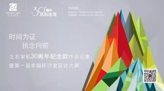 2016年,為了紀念左右家私走過的三十年風雨歷程以及取得的輝煌成績,同時答謝公司合作伙伴的多年支持,以及借此契機推動與合作伙伴進一步深入合作,特舉辦左右家私三十周年紀念款作品征集暨第一屆“幸福杯”沙發(fā)設(shè)計大賽,面向社會各界設(shè)計師公開征選家具設(shè)計作品。