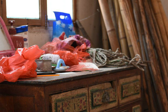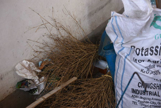 到處飛走的雞鴨以及地上的雞鴨糞便,客廳里擺滿肥料和農具,房間里也沒有多余的家具,只是一些破舊的木頭家具,沒有餐桌,甚至沒有多余的凳子。伯父、嬸嬸身上都沾滿泥土,應該是一上午都在田間干活,中午就和衣而睡,如果不是我們叨擾,可能馬上又下下地去。
