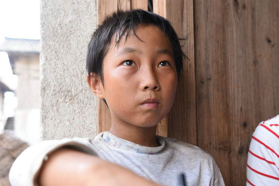 鐘斌,小學四年級學生,性格孤僻封閉,不愛說話,也不愛與人交流。他黝黑的面龐,眼神飄忽不定的,全然沒有同齡孩子應有的天真與爛漫。由于干農活的關系,身上的衣服渾身沾滿泥土和灰塵,這就是鐘誠的生活常態(tài)。