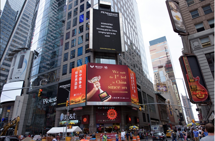 紐約當(dāng)?shù)貢r(shí)間8月5日,一張“手握獎(jiǎng)杯”的穗寶形象海報(bào),高調(diào)登陸人群最集中、商業(yè)最繁華的美國(guó)紐約時(shí)代廣場(chǎng)路透社大屏。
