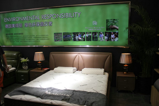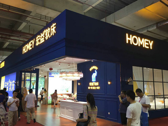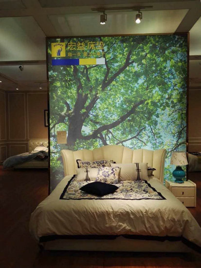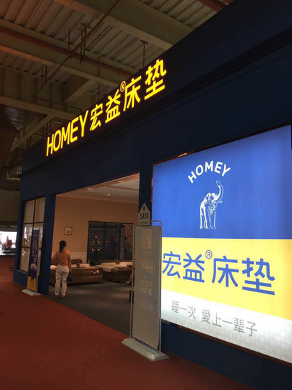 宏益床墊在這次東莞展會上有兩個展廳,位置剛好是斜對角的,一個展廳是用神話照明的GD83軌道燈,而另一個展廳是用的某品牌的斗膽燈,剛好展會給這兩個展廳拍了幾張照片。