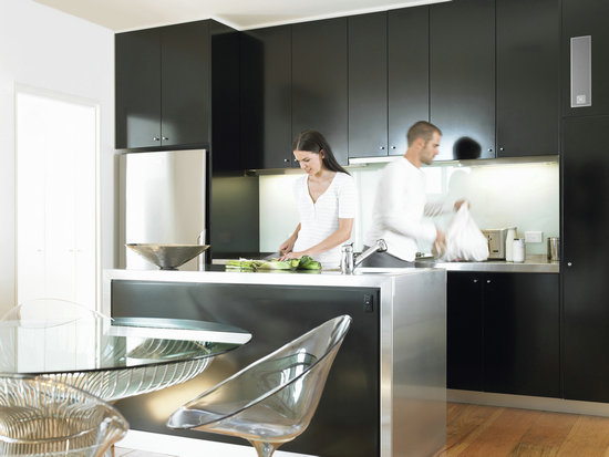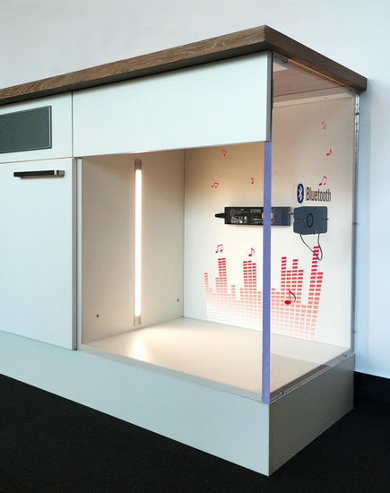 Audio System音響和Opalum音箱都可以安裝到櫥柜中,操作臺中甚至掛在墻壁角上,沒有占地空間的煩惱;鋼化玻璃表面和觸控按鈕的設計,可謂人性化至極,沒有安全隱患還能保持音響的外形美觀、堅固。