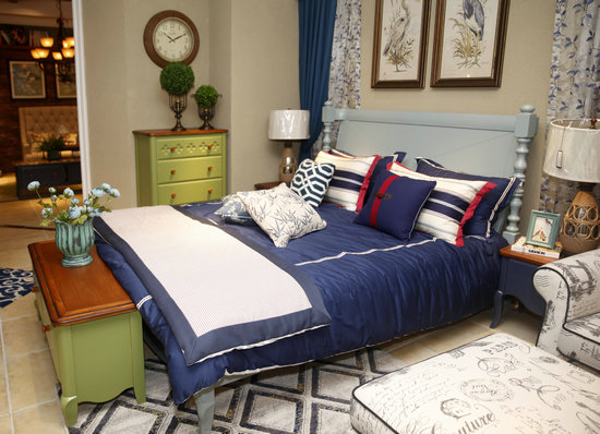 美式鄉(xiāng)村田園風(fēng),以樂享生活為最高原則,在布料、配飾的選擇上也充分強(qiáng)調(diào)舒適性;為了營(yíng)造出舒適與自在、溫馨與自由的氛圍,設(shè)計(jì)師多將有著抽象植物圖案的清淡優(yōu)雅的布藝點(diǎn)綴在美式田園風(fēng)格的家具當(dāng)中,讓人在悠然的環(huán)境中得以真正的放松心情。
