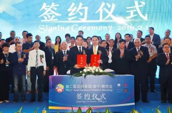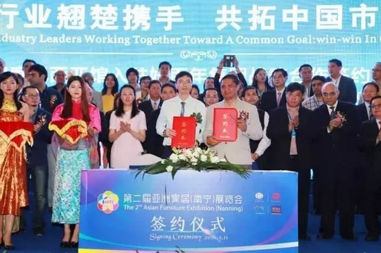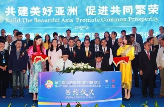 開(kāi)幕儀式上,好百年集團(tuán)先后與亞洲家具聯(lián)合會(huì)、泰國(guó)家具協(xié)會(huì)、馬來(lái)西亞家具總會(huì)、印度尼西亞家具與工藝品行業(yè)協(xié)會(huì)簽署雙邊戰(zhàn)略合作協(xié)議,保持著政治、行業(yè)、企業(yè)的優(yōu)化組合和亞洲家具行業(yè)間的緊密聯(lián)系,這標(biāo)志著好百年集團(tuán)尋求“一帶一路”政策下全球“多邊發(fā)展,共榮共贏”戰(zhàn)略落到實(shí)處。同時(shí),亞洲家居產(chǎn)業(yè)(南寧)合作會(huì)議也同期召開(kāi),研究探索利好政治條件下亞洲家具行業(yè)共同繁榮發(fā)展之路。