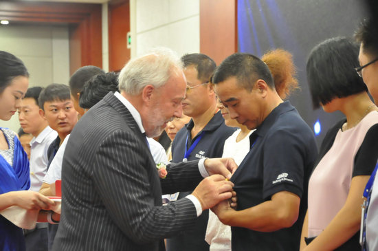活動(dòng)期間,董事長Lindemann先生為閆方先生頒發(fā)了“十年金牌勛章”,對五年以上的員工及其家屬做了表彰,以表對閆方及其團(tuán)隊(duì)的肯定和褒獎(jiǎng)。