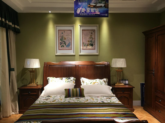 (此為賴氏品牌實木“北美一號”系列美式套房實景,由神話定制照明提供)