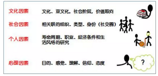 心理因素包括購(gòu)買(mǎi)和使用的目的、感覺(jué)、理解、信仰和生活態(tài)度等。如:有些群體比較傳統(tǒng)和謹(jǐn)慎、有些則愿意嘗試新事物,有些個(gè)性平和、被動(dòng),有些則比較沖動(dòng)。心理因素會(huì)有相應(yīng)的行為呈現(xiàn),如:有些會(huì)不斷調(diào)整,有些則不太愿意麻煩;使用激烈度也有不同;有的群體具有品牌的犬儒主義傾向,有的沒(méi)有那么在乎;有的熱情積極,有的消極或無(wú)所謂,有的還可能是敵視的。