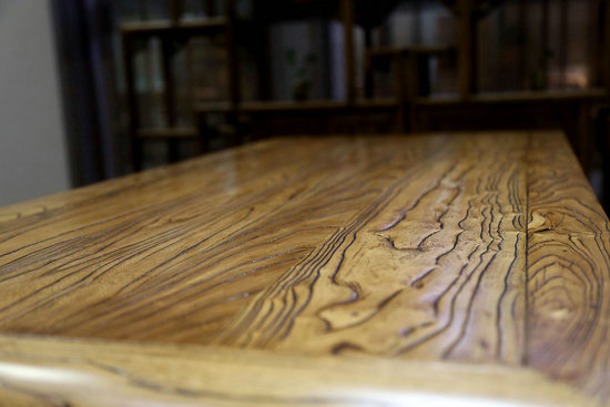 榆木落梁,從落居到廢棄,這些老榆木待在老房子中經(jīng)歷了幾十年甚至上百年歲月的洗禮,在它行云流水般的紋理中,飽含著百年的時光記憶,每一個凹凸的年輪都承載黃河兒女的歷史軌跡。在面對這份獨有的歲月感,我們可以凝想:老祖宗們是如何圍繞著它們生活的,而今段王府又如何將把看似平凡的老榆木盡力做成“不平凡”的家具。