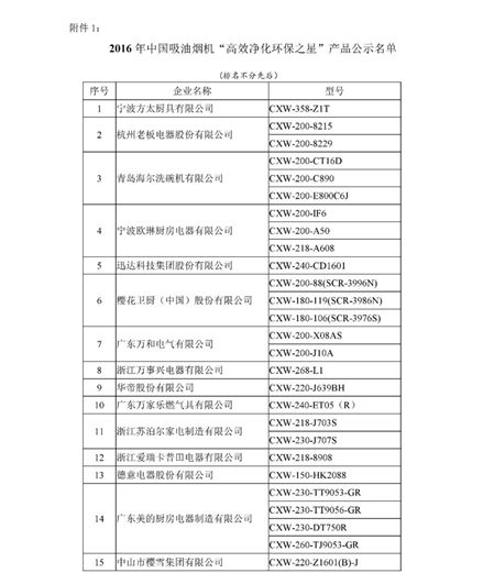 11月29日,中國(guó)五金制品協(xié)會(huì)正式公布了2016年家用吸油煙機(jī)及集成灶“高效凈化環(huán)保之星”產(chǎn)品名單,櫻雪廚電憑借直流變頻吸油煙機(jī)CXW-220-Z1601(B)-J在評(píng)比中榮獲“高效凈化環(huán)保之星”稱號(hào)。