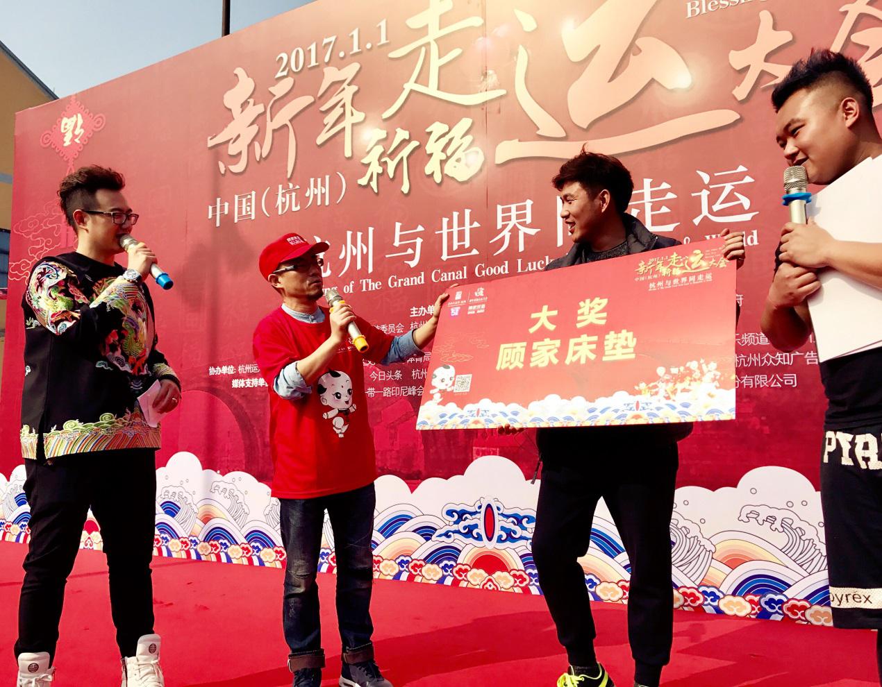 2017年1月1日上午,新年祈福走運(yùn)大會(huì)在杭州運(yùn)河畔如火如荼進(jìn)行,包括杭州市政領(lǐng)導(dǎo)、國內(nèi)外友人、杭州市民、顧家床墊客戶代表在內(nèi)的千余人方陣轟動(dòng)全城!