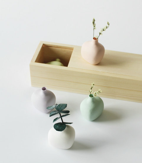 “babyvase”小花瓶,小巧可愛(ài)。在色彩和質(zhì)感上都非常細(xì)膩溫柔,如同嬰兒肌膚般光滑。在花瓶中插上小花小草,擺在案頭,萌發(fā)出小小的生機(jī)