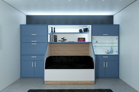 看似簡(jiǎn)單的收納空間,海福樂(lè)創(chuàng)造性的將床、書(shū)桌與衣柜、儲(chǔ)物柜等功能集于一體,可折疊伸縮型五金,讓衣柜門(mén)板自由開(kāi)合隱藏,讓普通的家具輕松實(shí)現(xiàn)空間和時(shí)間的巧妙轉(zhuǎn)換。