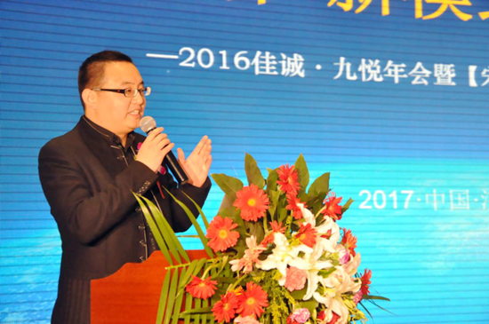 1月5日,“2016佳誠·九悅商務(wù)年會(huì)”暨“宋檀”系列新品發(fā)布會(huì)在濟(jì)南盛大召開。山東省家具協(xié)會(huì)執(zhí)行會(huì)長(zhǎng) 牛廣霞女士,蘇州家具展創(chuàng)辦人趙藝學(xué)先生,山東大學(xué)新聞傳播學(xué)院黨委書記、管理學(xué)院教授、博士生導(dǎo)師王德勝教授,山東佳誠董事長(zhǎng)王如革先生及來自全國(guó)各地的300余名經(jīng)銷商出席了本次會(huì)議。
