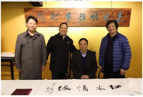 “嘉木明韻”董事長王嘉明先生(左二)與寧波書畫泰斗劉文選先生(中)合影留念