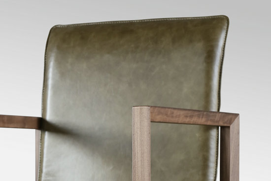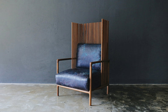 高背染皮單人沙發(fā)把過去撿煉起來,在設計中重新獲得連接。選用黑桃木和皮革為材質(zhì),手工將皮革與棉胎縫制起來。木頭穩(wěn)實的觀感,配以皮革特有的歲月感,它如同一位長者,經(jīng)光陰和歲月的沖洗,在空間中散發(fā)出深邃與沉穩(wěn)的氣質(zhì)。