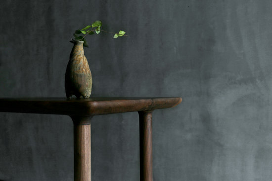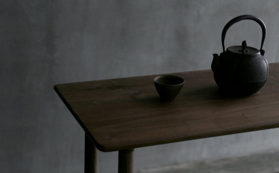 初看茶臺,讓人不禁回憶舊時故里,放置在高堂的高桌,素雅與靜怡。茶臺由純黑桃木制做,利用榫卯結構,搭建上下兩層,加大了放置物品的空間與增加了便利性。從舊日的高桌中提煉質(zhì)樸,從當代居家需求中加以改良。