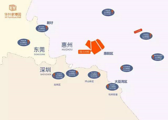 如廣東深惠區(qū)域的家具企業(yè)雖然只有3000多家,但年產(chǎn)值卻高達(dá)2000多個(gè)億,是龍江區(qū)域的十倍,如此巨大的產(chǎn)業(yè)規(guī)模,使得華葉家博園的落成,成為當(dāng)?shù)禺a(chǎn)業(yè)優(yōu)化的關(guān)鍵。華葉家博園距離深圳龍崗、坑梓、坪山、坪地、寶安、東莞沙田、清溪、惠州三和、新圩、大亞灣等家具產(chǎn)業(yè)集聚區(qū)最遠(yuǎn)45分鐘、最短15分鐘車程,對周邊家具產(chǎn)業(yè)的輻射與集聚效應(yīng)顯著。