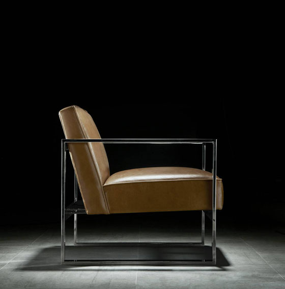 Alum休閑椅的設(shè)計(jì)師將金屬與進(jìn)口頭層牛皮碰撞、不銹鋼的幾何直線條與進(jìn)口牛皮軟包形成冷硬與溫柔的對(duì)比,獨(dú)特且耐人尋味。