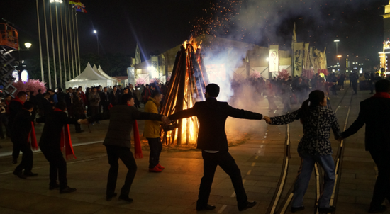大伙圍著篝火載歌載舞歡慶屬于家居人的節(jié)日