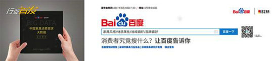 3月20日下午,2017深圳時尚家居設(shè)計周暨第32屆深圳國際家具展上,由深圳市家具行業(yè)協(xié)會與百度聯(lián)合主辦的“中國家具消費需求大數(shù)據(jù)發(fā)布會”如期舉行,萬眾期待的行業(yè)首發(fā)在深圳家具研究開發(fā)院院長許柏鳴、深圳市家具行業(yè)協(xié)會副秘書長劉瑞貞、百度(中國)有限公司深圳分公司總經(jīng)理張作誠、百度整合營銷策劃部總監(jiān)馮文振等嘉賓與現(xiàn)場觀眾的見證下正式發(fā)布。