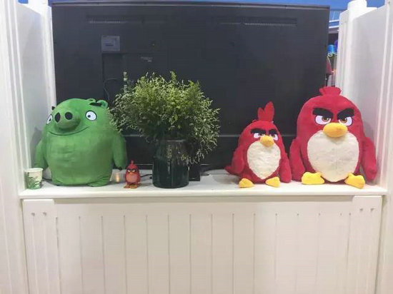 遠(yuǎn)遠(yuǎn)看去,松堡王國(guó)的展位顯得十分特別,顏色鮮明,綠植圍繞,彰顯了其百花齊放的設(shè)計(jì)理念。更為重要的是,門口站了三只大大的玩偶——來自芬蘭的三只萌萌的憤怒的小鳥,引來眾人爭(zhēng)相合照,引爆了現(xiàn)場(chǎng)人流。