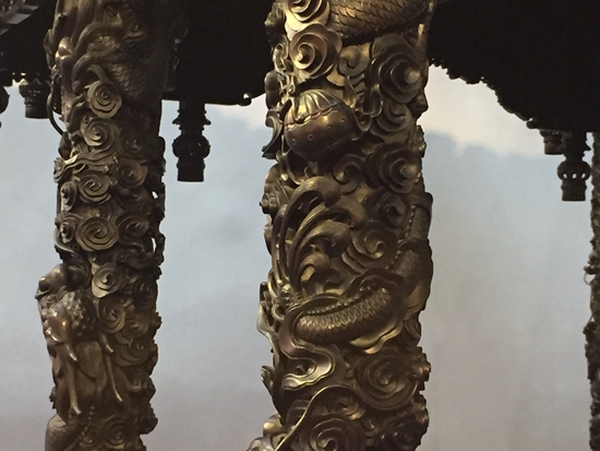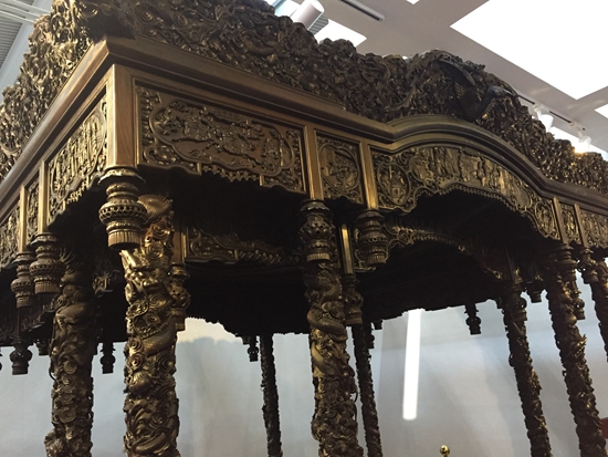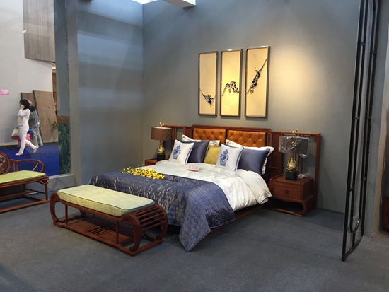 在老周家居入口處擺放著一張古色古香、氣勢恢宏的傳統(tǒng)中式床,在展覽期間,每時每刻都有觀眾圍在此處駐足參觀,連連驚嘆。據(jù)老周家居營銷總監(jiān)孫先俊介紹,這張按照清朝宮廷家具一比一的比例打造的“乾坤大寶床”采用720度鏤空雕花手工雕刻而成,由30個二十年以上工齡的工匠耗時3年采用大葉紫檀制作。此床一經(jīng)推出就引起了行業(yè)強烈的反響和媒體爭相報道。在本次展會上也是展出單品價值最高的家具。孫先俊談到,這張床充分體現(xiàn)了老周家居工匠深厚的工藝技術(shù)和對傳統(tǒng)中式紅木文化精髓的研究。而事實也證明,在簡約現(xiàn)代風(fēng)格大行其道的今天,傳統(tǒng)家具國粹仍然受到了很多人的贊賞和喜愛。