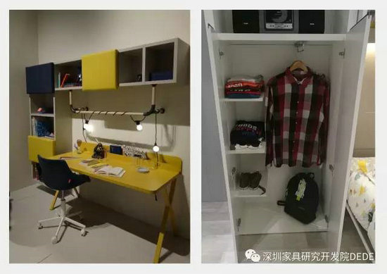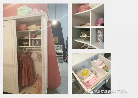 ▲Cliek家具關(guān)注兒童使用習(xí)慣,衣柜設(shè)計與成人不同,分區(qū)合理;家具所有隔板均進行弧線倒角設(shè)計;抽屜也進行合理分區(qū)。