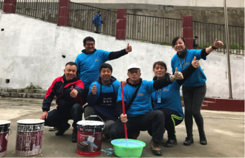 3月30日,駱駝漆攜手中國扶貧基金會(huì)、君愛公益發(fā)展服務(wù)中心,來到了成都雅安寶興縣鹽井中心校,為學(xué)校的外墻進(jìn)行了翻新施工。