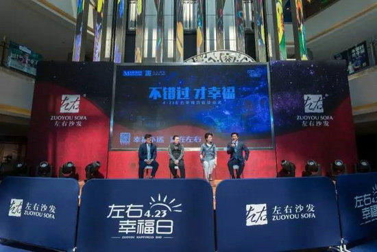 最后,左右品牌幸福大使楊瀾和各位家居業(yè)大佬一道將手掌伸向大屏中的“啟動(dòng)能量球”,屏幕瞬間變幻,瑰麗五彩的光芒中烘托出一排藍(lán)色大字:“4.23左右幸福日”——從此,4月23日因左右沙發(fā)而被賦予“幸福”的涵義。