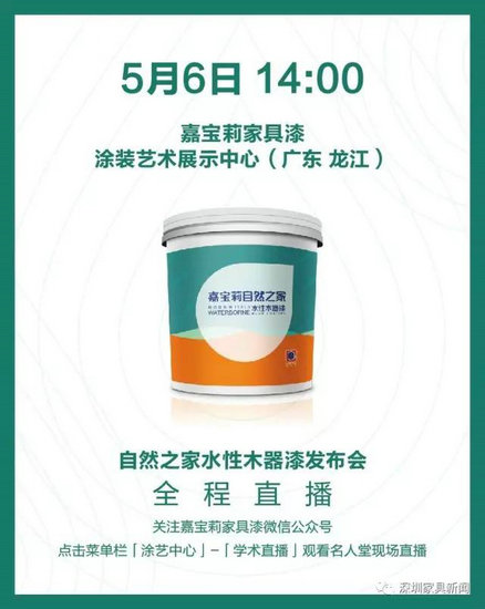 為了讓企業(yè)真正掌握水性漆及其相應(yīng)技術(shù),5月6日,嘉寶莉家具漆將于龍江館名人堂舉辦一場集新品亮相與大師演說為一體的發(fā)布會,屆時特邀水性木器漆專家屈玉山親臨現(xiàn)場,講述“自然之家”如何成為油轉(zhuǎn)水背后的支撐力并且現(xiàn)場揭秘解決“油轉(zhuǎn)水”難點的大招,提供從產(chǎn)品到整體方案的完善服務(wù)。
