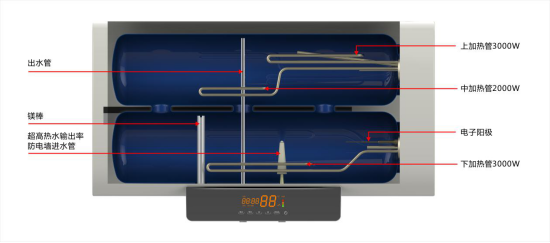 開創(chuàng)行業(yè)梯度分層加熱方式,雙膽梯度分3層3000W/2000W/3000W依次自上而下逐步加熱,大大提升熱水輸出時(shí)間。即開即洗,無須傳統(tǒng)儲(chǔ)水式半個(gè)小時(shí)甚至一個(gè)小時(shí)的加熱時(shí)間等待,滿足快節(jié)奏的生活需求。