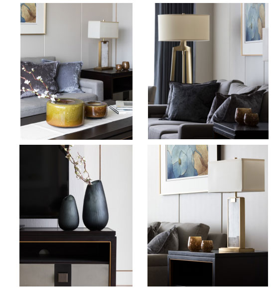 “對于230㎡的大平層而言,簡約中還需要一些東西來襯托房子的氣度。” 設(shè)計師蘇甜說,“硬裝墻面有金色線條,所以我用了簡單的金色元素來呼應(yīng)。”