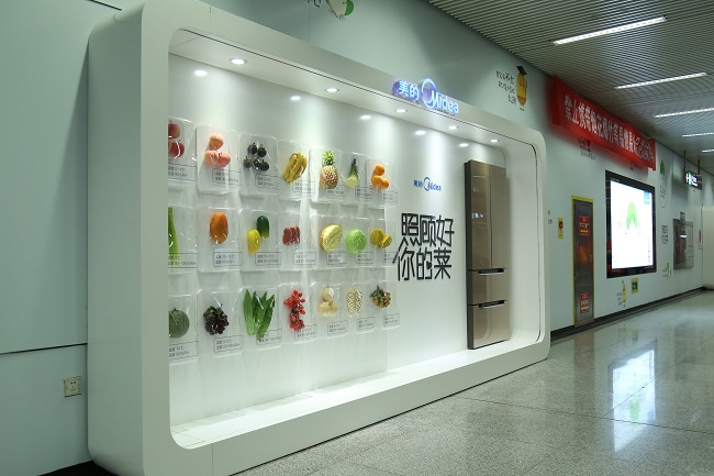 最近北京、上海、南京三個城市的許多電梯中,不少人突然發(fā)現(xiàn)這些電梯一夜之間變成了冰箱。在這些“冰箱”中,生鮮美食羅列其中,人站在其中,仿佛進(jìn)入了一個小人國一般。而美的冰箱甚至還故意開大了電梯中的冷氣,讓人真切感受到冰箱冷藏室中的的陣陣“涼風(fēng)”。