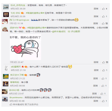 看來(lái)帥豐不但要承包大家的廚房,還得牽線當(dāng)紅娘,也是為粉絲操碎了心~哈哈,網(wǎng)友也醉醉的,你們確定“小強(qiáng)”、“螨蟲”能歸類到 “廚房”“必備”里嗎?