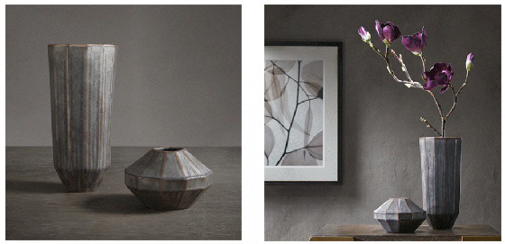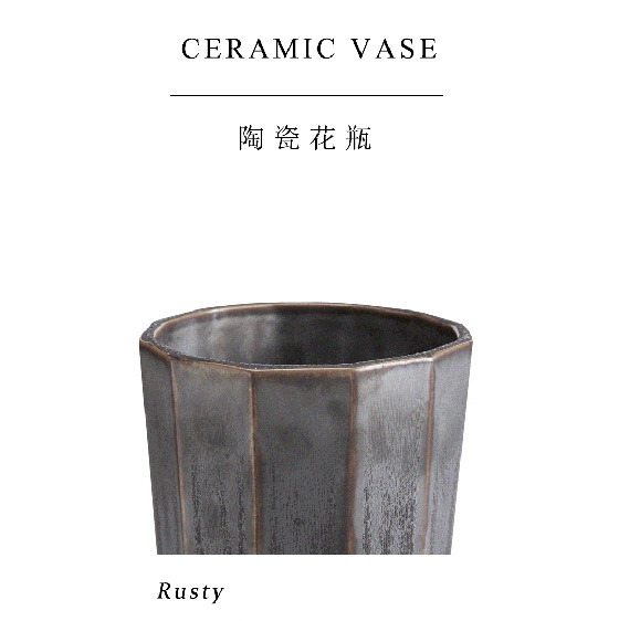 Rusty楞面幾何花瓶系列,采用炻瓷材質(zhì),施以深沉卻富有變化的釉色,帶有棱角的硬朗造型與獨(dú)特的金屬感相碰撞,質(zhì)感粗礪淳厚。