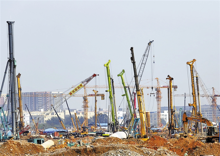 工地上呈現(xiàn)一片繁忙景象。